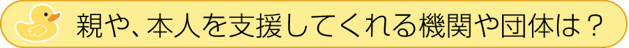 ダウン症児の親の会には、全国規模の日本ダウン症協会(JDS)と、各地域の会があります。岡山県の県北には私たち親の会「あひるの会」があります。その他、児童相談所、保健師さん、役所、社会福祉協議会などがあります。